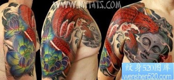 半建纹身图片彩色观音鲤鱼莲花半胛纹身图片_鲤鱼纹身图案大全_纹身图吧