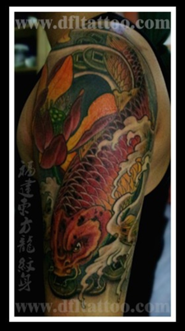 男士手臂彩色锦鲤纹身图案_鲤鱼纹身图案大全_纹身图吧