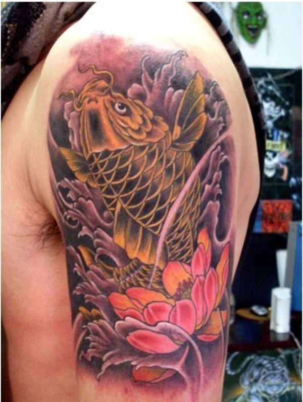 莲花池里的鲤鱼图案_鲤鱼纹身图案大全_纹身图吧