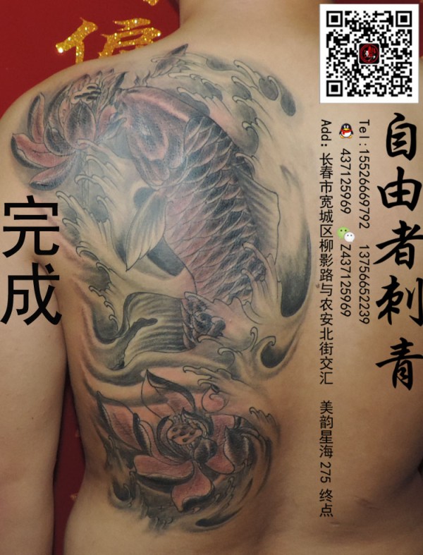 满背鲤鱼莲花纹身图案_鲤鱼纹身图案大全_纹身图吧