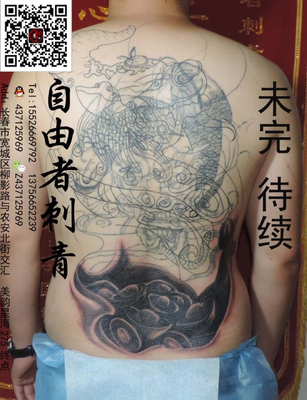 旧纹身覆盖与纹身修改技术展示覆盖后背鲤鱼纹_鲤鱼纹身图案大全_纹身图吧