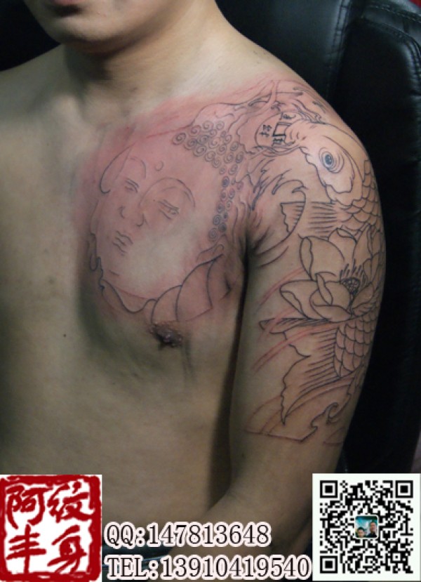 纹身最开始的割线图片阿丰的鲤鱼加佛像图案割_鲤鱼纹身图案大全_纹身图吧