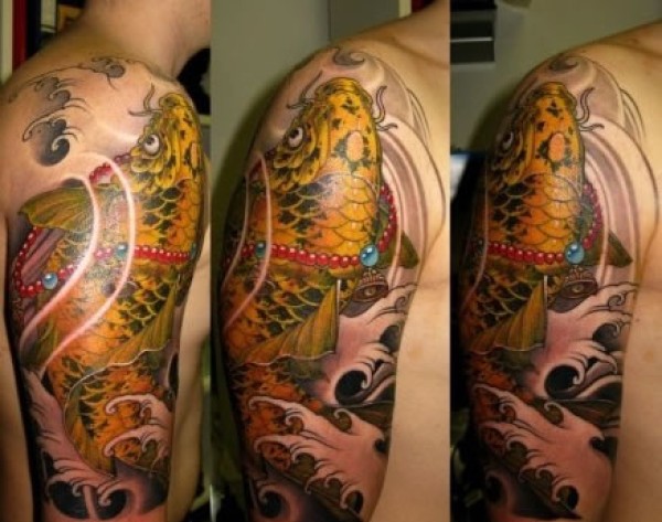 不同款式与位置的黄金鲤鱼纹身图臂膀上的黄金_鲤鱼纹身图案大全_纹身图吧