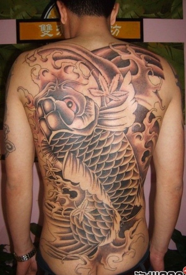 满后背鲤鱼跳龙门纹身欣赏_鲤鱼纹身图案大全_纹身图吧