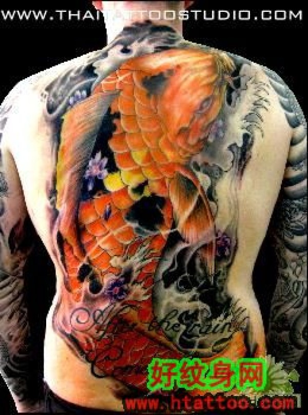 满背鲤鱼莲花纹身图案_鲤鱼纹身图案大全_纹身图吧