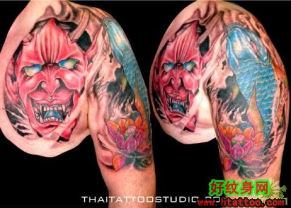 人脸与鲤鱼_纹身图案大全_纹身图片_鲤鱼纹身图案大全_纹身图吧