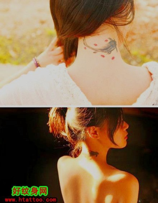 女生颈部l鲤鱼纹身_鲤鱼纹身图案大全_纹身图吧