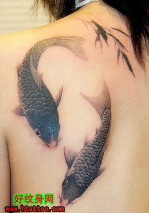 女生肩部鲤鱼纹身_鲤鱼纹身图案大全_纹身图吧