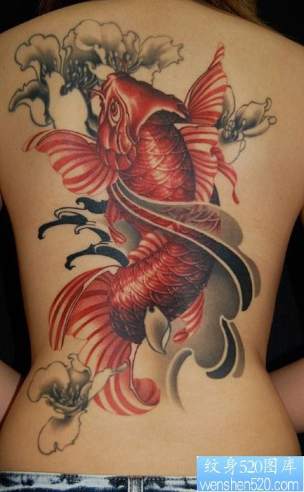 后背红色鲤鱼纹身_鲤鱼纹身图案大全_纹身图吧