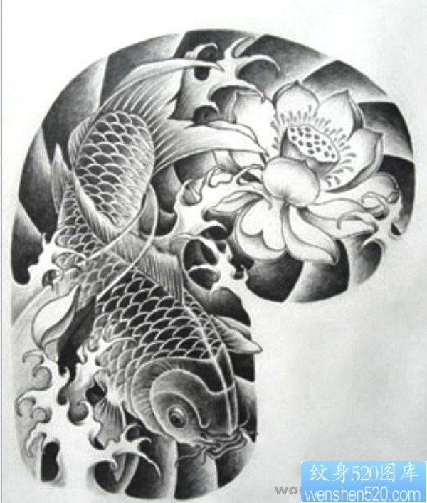 黑白鲤鱼纹身_鲤鱼纹身图案大全_纹身图吧