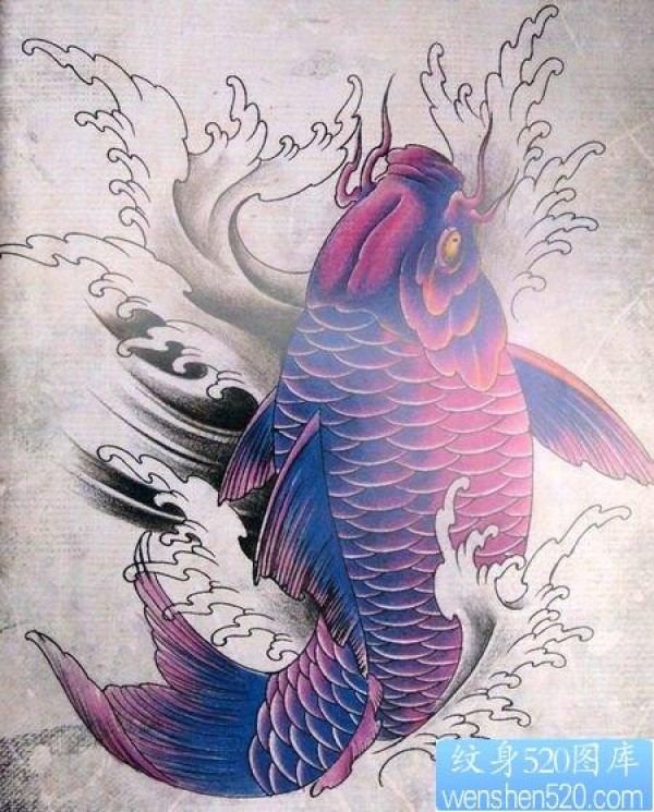 漂亮的彩色鲤鱼纹身手稿_鲤鱼纹身图案大全_纹身图吧