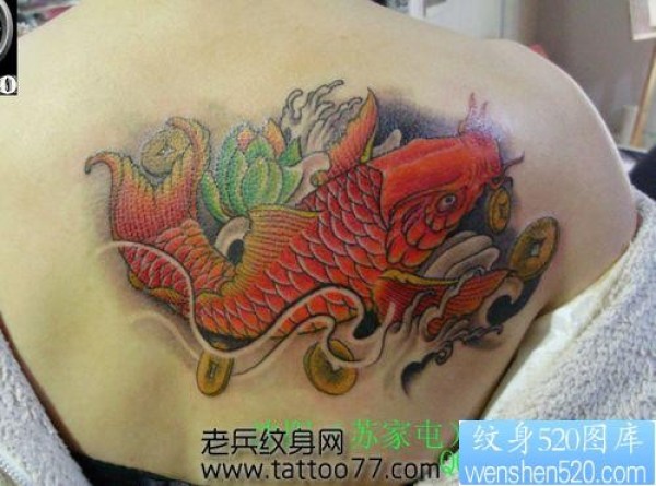 美女背部彩色鲤鱼纹身图片_鲤鱼纹身图案大全_纹身图吧