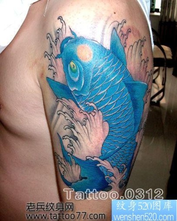大臂彩色鲤鱼纹身图片_鲤鱼纹身图案大全_纹身图吧