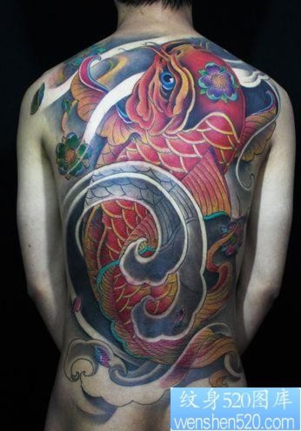 好看的满背彩色鲤鱼纹身图片_鲤鱼纹身图案大全_纹身图吧