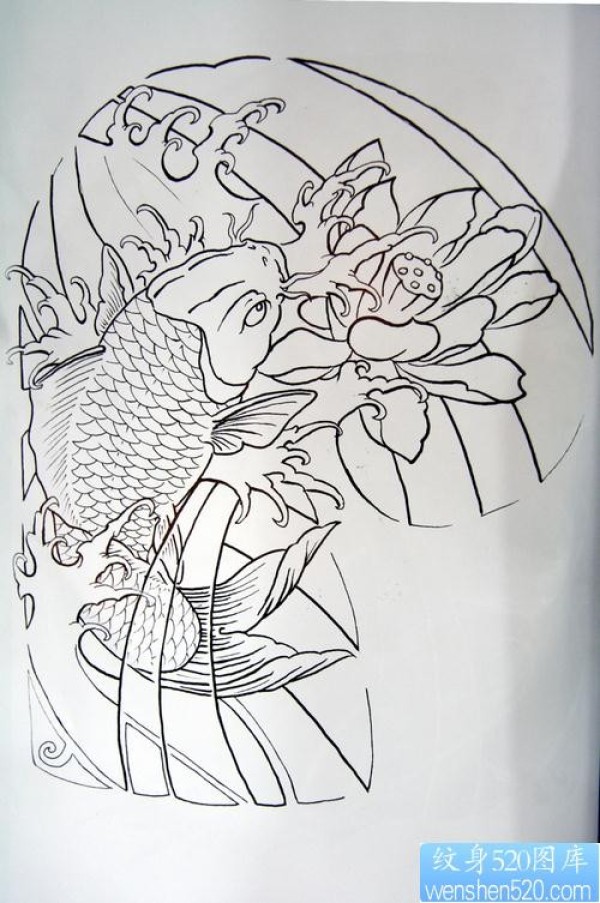 鲤鱼莲花纹身图案手稿_鲤鱼纹身图案大全_纹身图吧