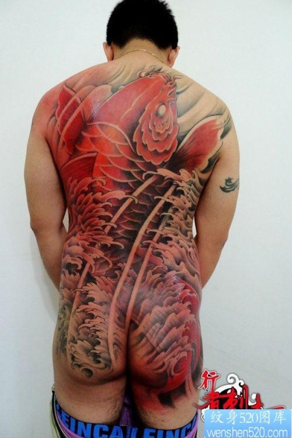 男生满背好看的彩色鲤鱼纹身图片_鲤鱼纹身图案大全_纹身图吧