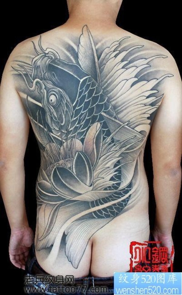 满背鲤鱼莲花纹身图案_鲤鱼纹身图案大全_纹身图吧