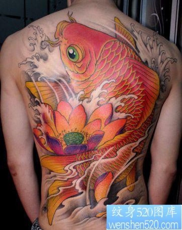 满背鲤鱼莲花纹身图案_鲤鱼纹身图案大全_纹身图吧