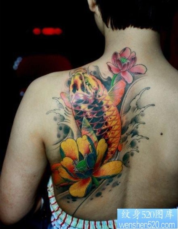 满背鲤鱼莲花纹身图案_鲤鱼纹身图案大全_纹身图吧