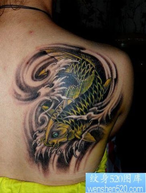 肩部彩色鲤鱼纹身图案_鲤鱼纹身图案大全_纹身图吧