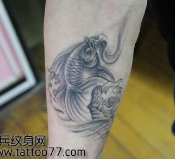 手臂黑灰小金鱼纹身图片_鲤鱼纹身图案大全_纹身图吧