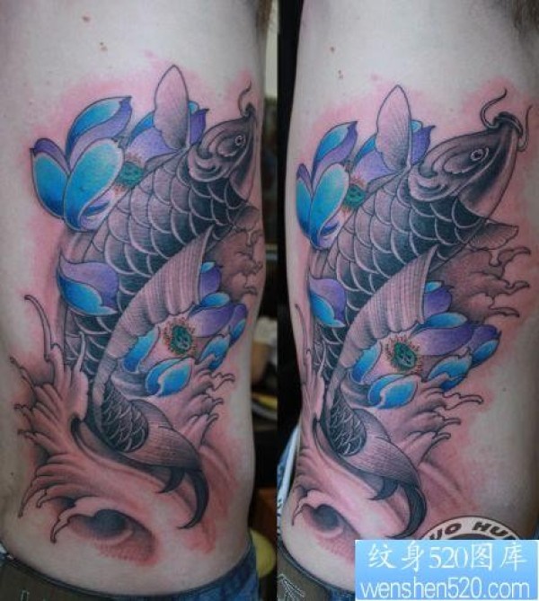 侧腰鲤鱼莲花纹身_鲤鱼纹身图案大全_纹身图吧