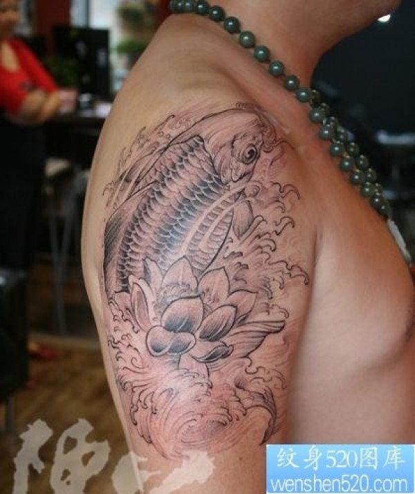 手臂精美好看的鲤鱼莲花纹身图片_鲤鱼纹身图案大全_纹身图吧