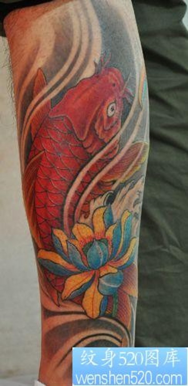 腿部彩色鲤鱼莲花纹身图案_鲤鱼纹身图案大全_纹身图吧