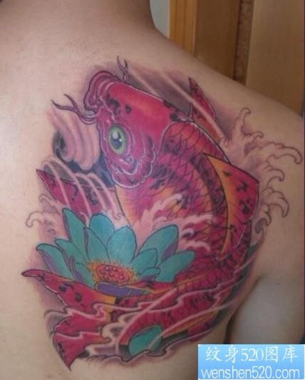 满背鲤鱼莲花纹身图案_鲤鱼纹身图案大全_纹身图吧