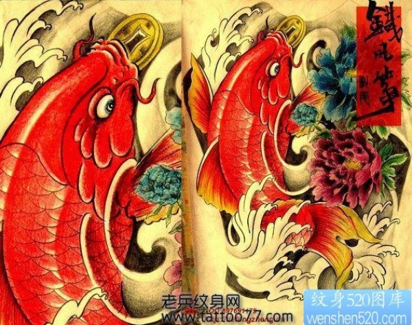 鲤鱼牡丹纹身图案_鲤鱼纹身图案大全_纹身图吧
