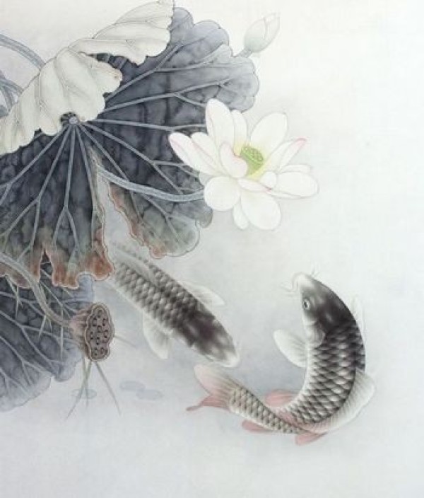 鲤鱼莲花纹身图案手稿_鲤鱼纹身图案大全_纹身图吧