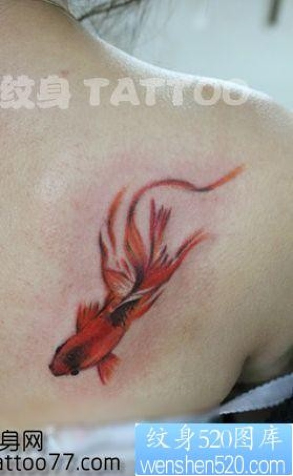 美女背部唯美好看的小金鱼纹身图片_鲤鱼纹身图案大全_纹身图吧