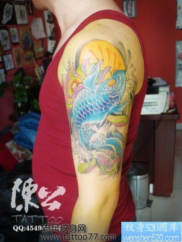 手臂艳丽的鲤鱼纹身图片_鲤鱼纹身图案大全_纹身图吧