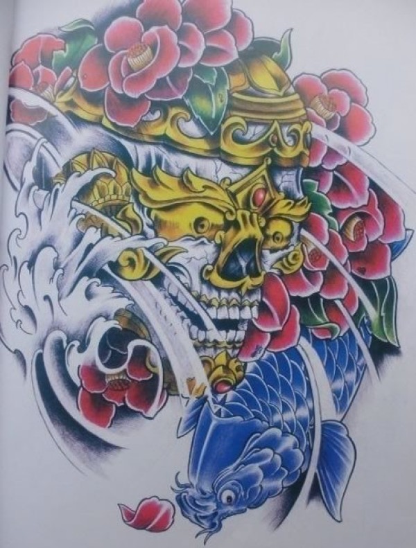 极致唯美黄金骷髅头huangjinkuloutou和鲤鱼纹身手稿_鲤鱼纹身图案大全_纹身图吧