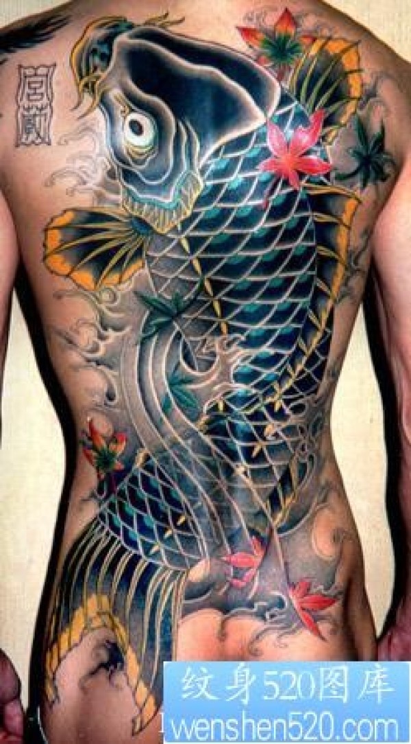 后背鲤鱼纹身图片图案_鲤鱼纹身图案大全_纹身图吧