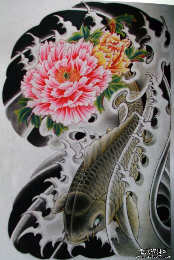 鲤鱼牡丹纹身图案_鲤鱼纹身图案大全_纹身图吧
