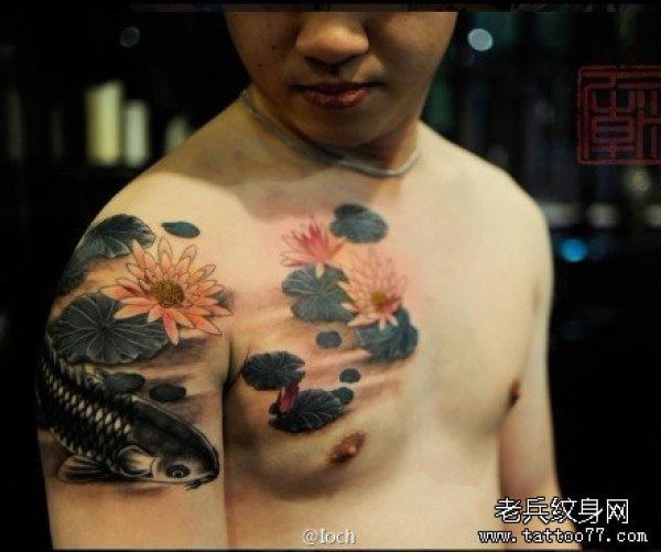 来自香港纹身圈的一款时尚精美的半胛水墨鲤鱼_鲤鱼纹身图案大全_纹身图吧