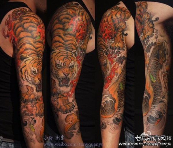 男人手臂帅气时尚的下山虎与鲤鱼纹身图案_鲤鱼纹身图案大全_纹身图吧