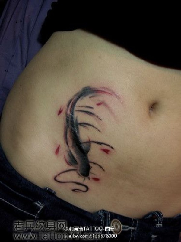 美女腹部水墨画鲤鱼纹身图案_鲤鱼纹身图案大全_纹身图吧