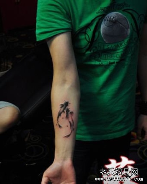 手臂水墨画风格小鲤鱼纹身图案_鲤鱼纹身图案大全_纹身图吧