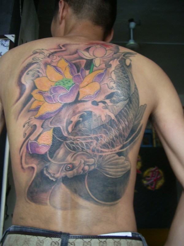 满背鲤鱼莲花纹身图案_鲤鱼纹身图案大全_纹身图吧