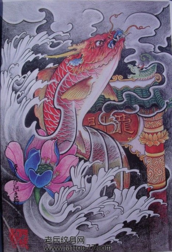 鲤鱼纹身手稿鲤鱼跃龙门纹身手稿_鲤鱼纹身图案大全_纹身图吧