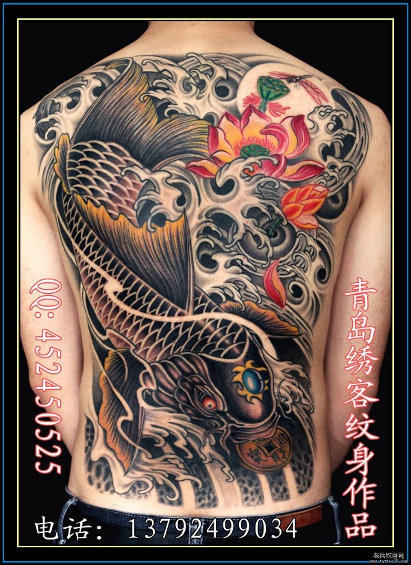 满背鲤鱼莲花纹身图案_鲤鱼纹身图案大全_纹身图吧