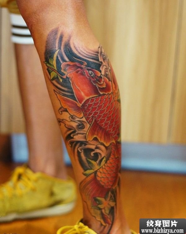 小腿传统鲤鱼纹身图案图片_鲤鱼纹身图案大全_纹身图吧