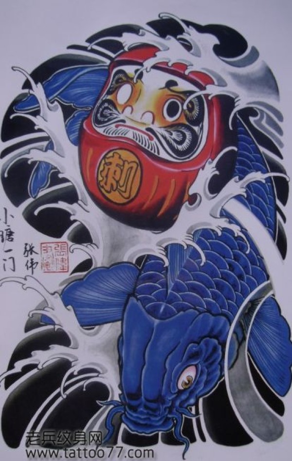半胛鲤鱼纹身手稿_鲤鱼纹身图案大全_纹身图吧