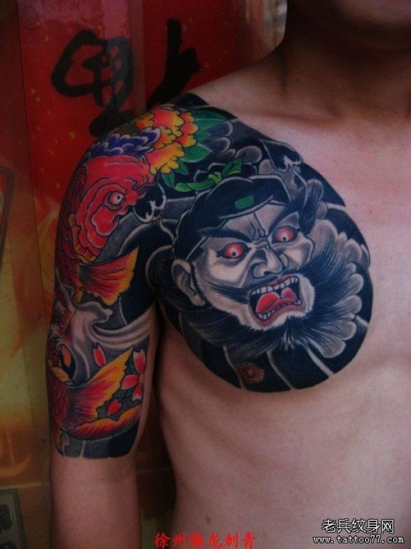 半胛纹身图案钟馗鲤鱼牡丹纹身图案_鲤鱼纹身图案大全_纹身图吧
