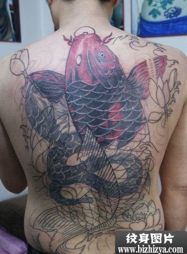 满背鲤鱼莲花纹身图案_鲤鱼纹身图案大全_纹身图吧