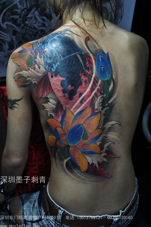 满背鲤鱼莲花纹身图案_鲤鱼纹身图案大全_纹身图吧