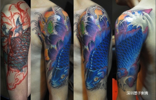 纹身 大臂遮盖鲤鱼_鲤鱼纹身图案大全_纹身图吧