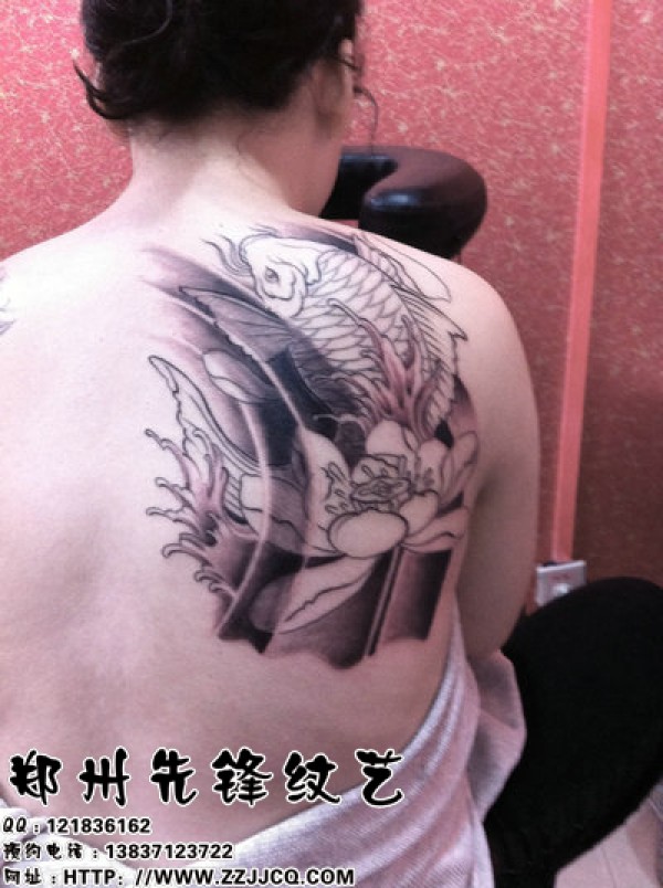 满背鲤鱼莲花纹身图案_鲤鱼纹身图案大全_纹身图吧